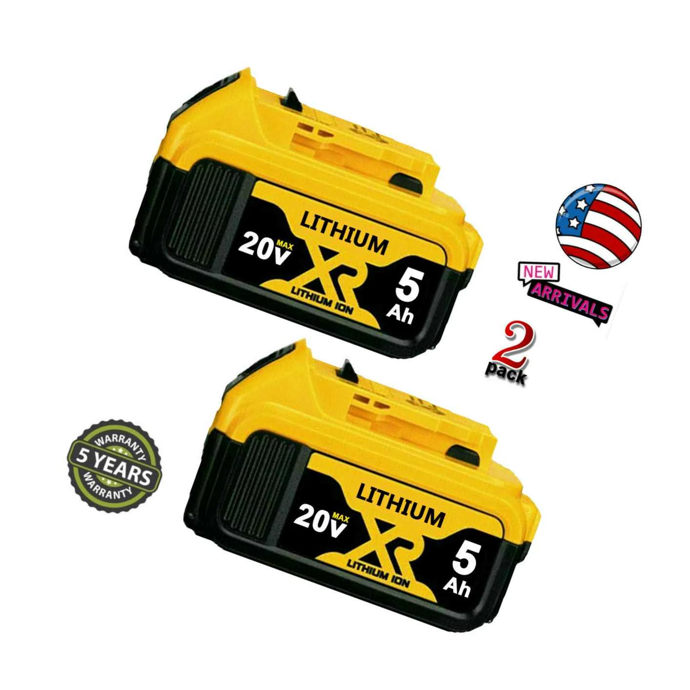 2Pack Dcb205-2 For Dewalt Dcb204-2 20 Volt Battery Lithium Max 5.0 Ah Dcb206 20V