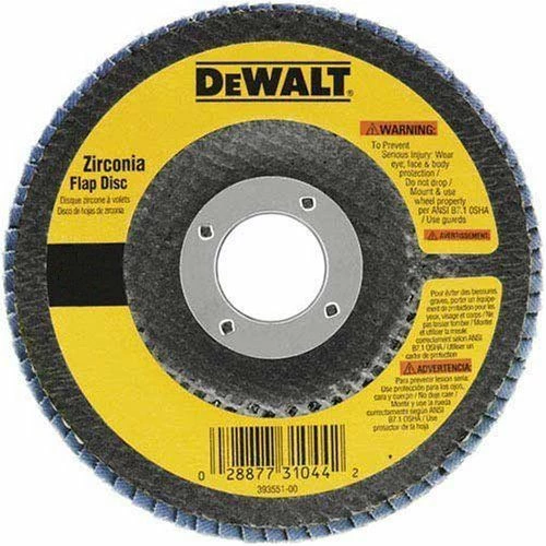 DeWalt 60 grit type 29 HP flap disc. Weld blending, removing weld slag. Surface finishing and preparation. Edge blending and chamfering.