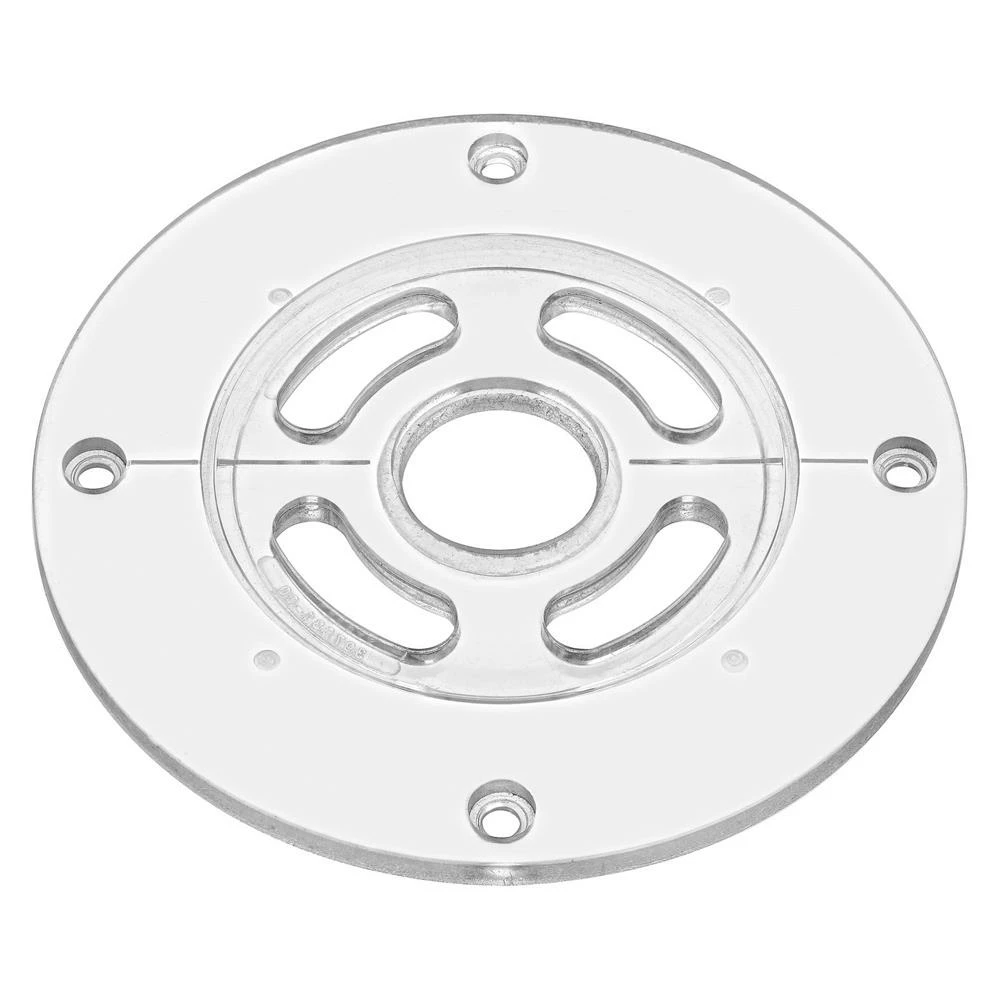 DeWalt round sub base compact router. The DEWALT DNP613 round sub base is clear for better visibility to the work area. It is made from durable lexan. The round base accepts template guides and allows user to get into tight areas.