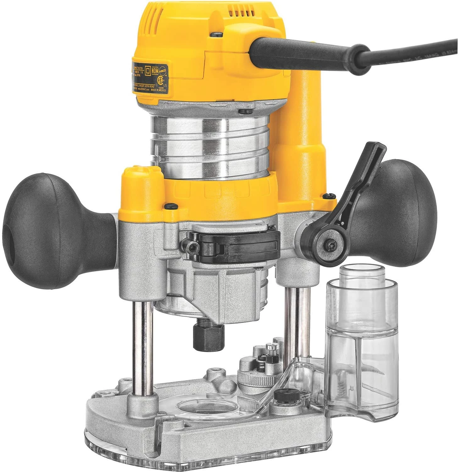 The DEWALT DNP616 compact router dust collection adapter for plunge base routers provides dust collection capability for DWP611PK plunge base unit. It is easy to setup with its quick thumbscrew attachment. It provides good bit visibility because of it clear construction. Easy vacuum hook up/plug in.