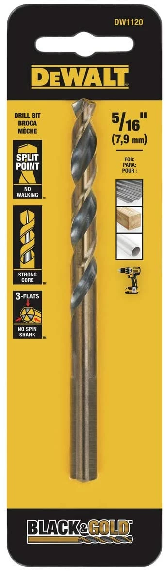 115-DW1920 Features: -No-Spin shank eliminates the frustration of bit spinning in the chuck. -Pilot Point Tip starts on contact for clean, accurate holes and reduces lock-up on breakthrough. -Diameter: 5/16 in. -Point Shape: Pilot.