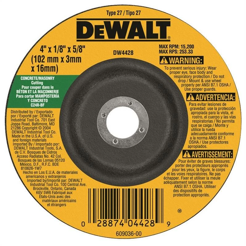 DeWALT DW4428 High Performance Type 27 Grinding Wheel 5/8 in Arbor 24-Grit Silicone Carbide 4 in Dia