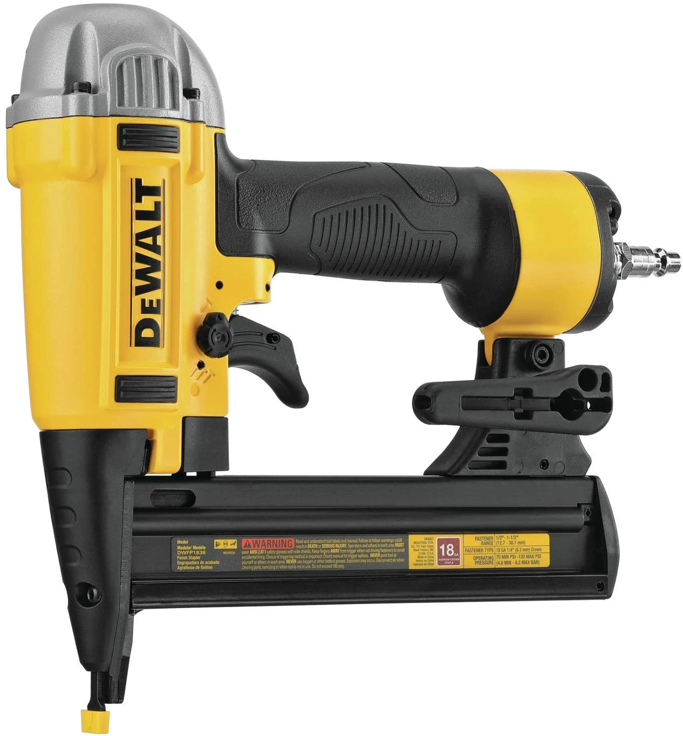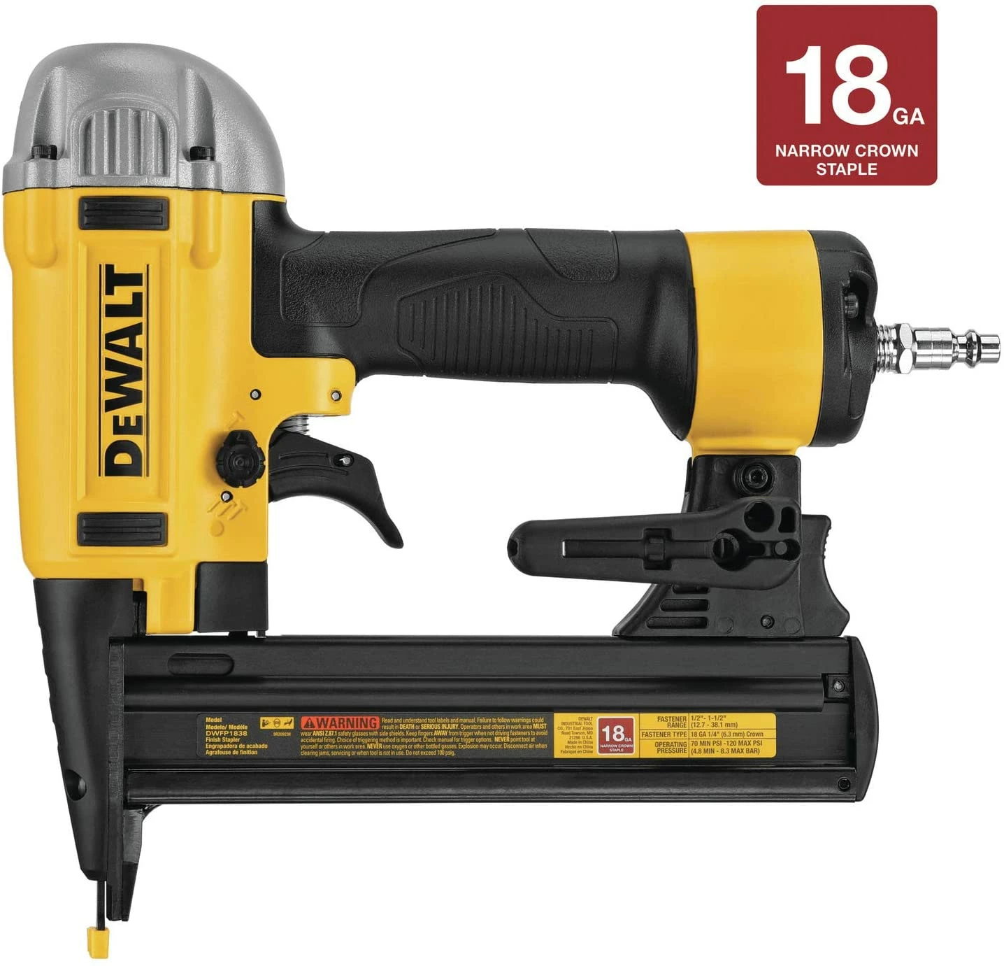 DEWALT DWFP1838 18 GA Finish Stapler. Long life maintenance-free motor. Tool-free depth-of-drive adjustment. Selectable trigger. Low staple lockout. Rear exhaust.