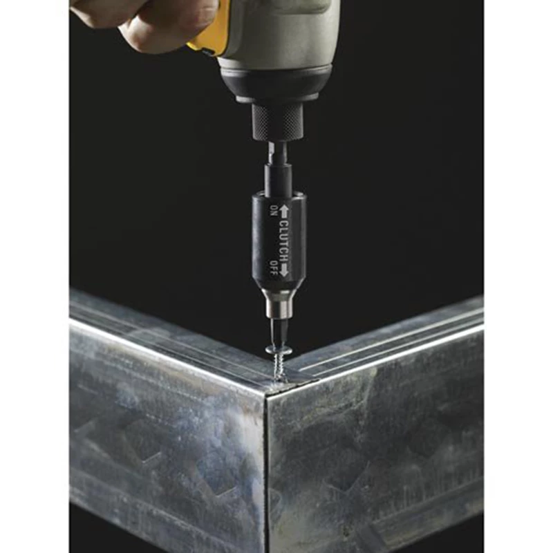 The DeWalt Accessory Bit Holder Impact Clutch is designed for metal-to-metal fastening. This accessory bit holder includes a robust shank so it can be used in tandem with the impact driver and screw gun. The tool can be turned on to keep bit stripping, bit breaking and screw stripping to a minimum. The tool can also be consequently turned off to fully utilize the torque of your impact driver or screw gun. The internal clutch mechanism offers the user up to 5x longer bit life. So enjoy a powerful performance no matter what you do with this impact clutch from DeWalt.