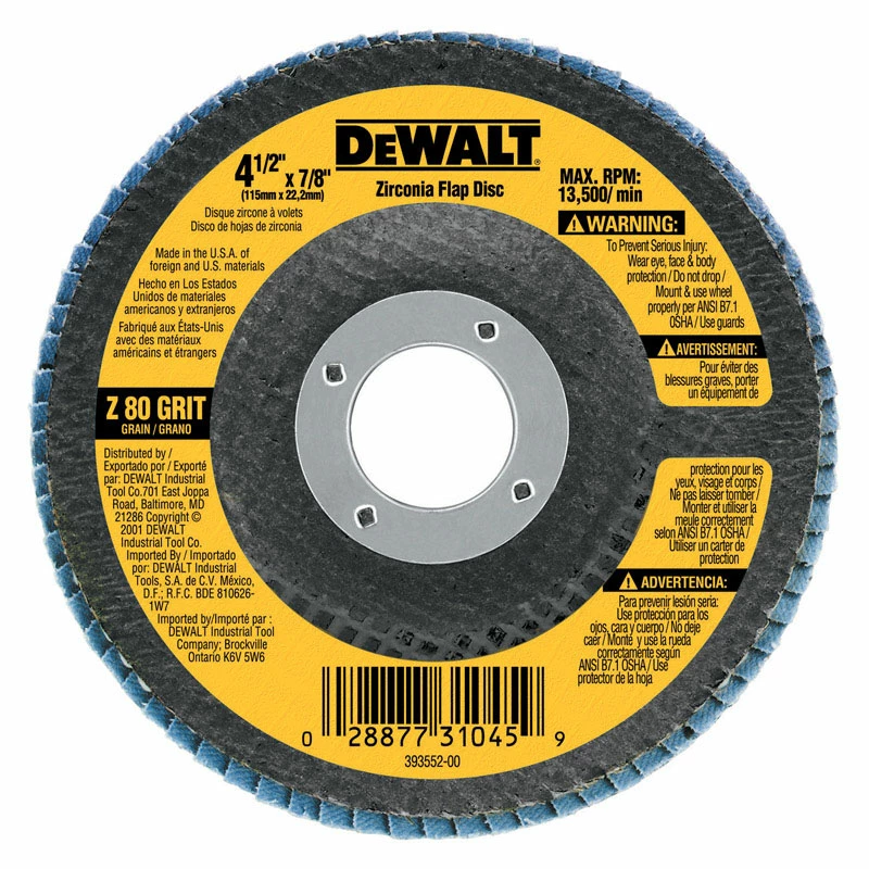 DeWalt 4-1/2 in. Dia. x 7/8 in. Zirconia Flap Disc 80 Grit Medium 13300 1 pc.
