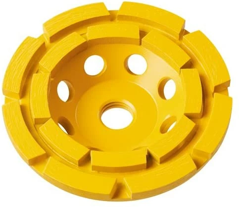 DEWALT DW4775 7″ double row diamond cup grinding wheel blister; High Diamond concentration for long life and aggressive material removal. Features large grinding segments with heat treated steel bodies which provides increases durability and wheel life. Double rim provides longer life and more aggressive material removal. Diameter 7″, Arbor diameter 5/8 – 11″, Max RPM 8,600. Designed for General Purpose masonry grinding; dry grinding of concrete and other masonry materials and for smoothing of uneven surfaces.