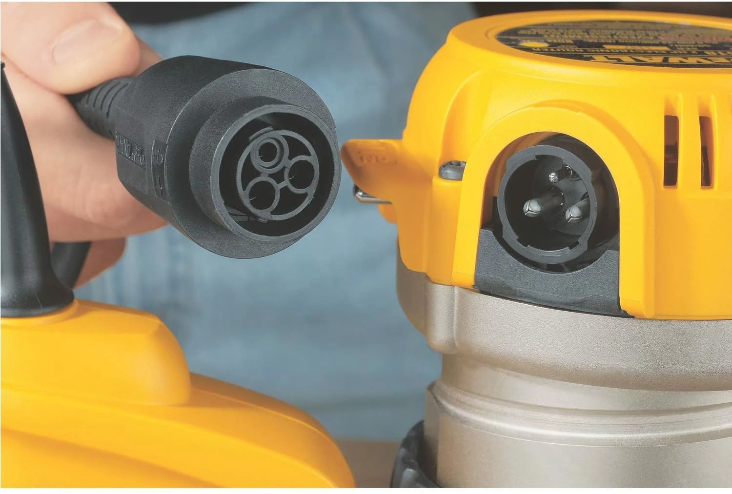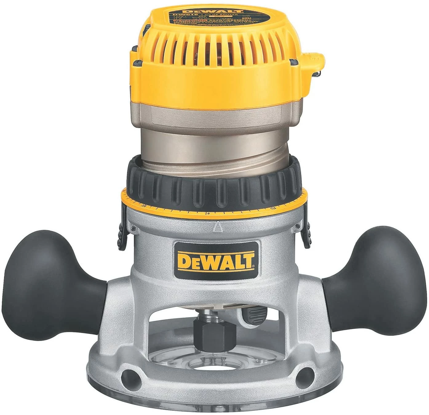 Featuring a 12-amp motor that delivers variable speed performance from 8,000 to 24,000 RPM, the DeWalt DW618 2-1/4-HP fixed-base router offers all the power and versatility that professionals demand. Soft start provides an extra-smooth finish and helps ensure that this tool even performs well when working with the toughest hardwoods. With a micro-fine depth adjustment ring, you can count on accurate adjustment in 1/64-inch increments, while a clear, Lexan sub-base ensures durability and visibility. The long, eight-slot collets are self-releasing to provide excellent bit