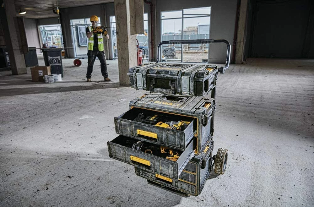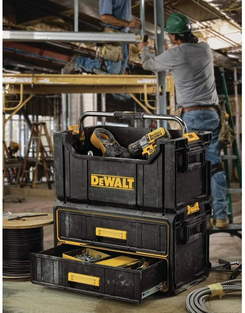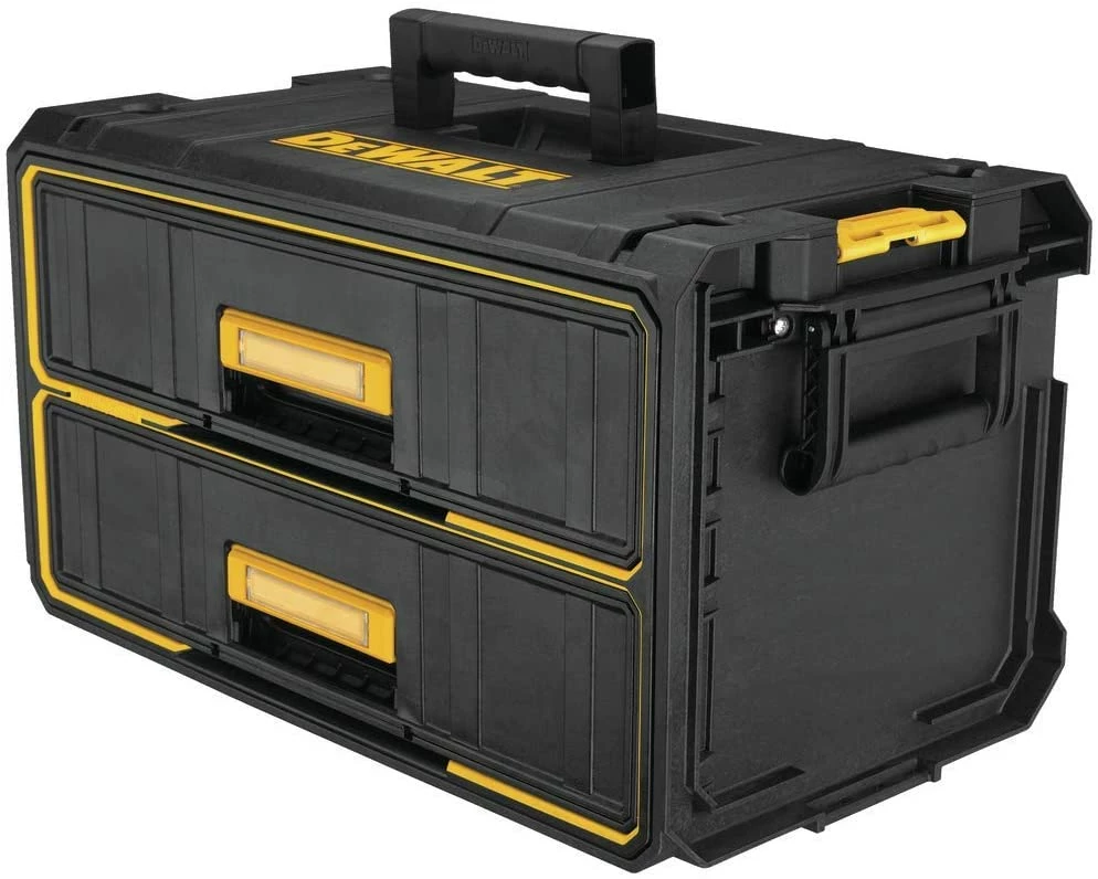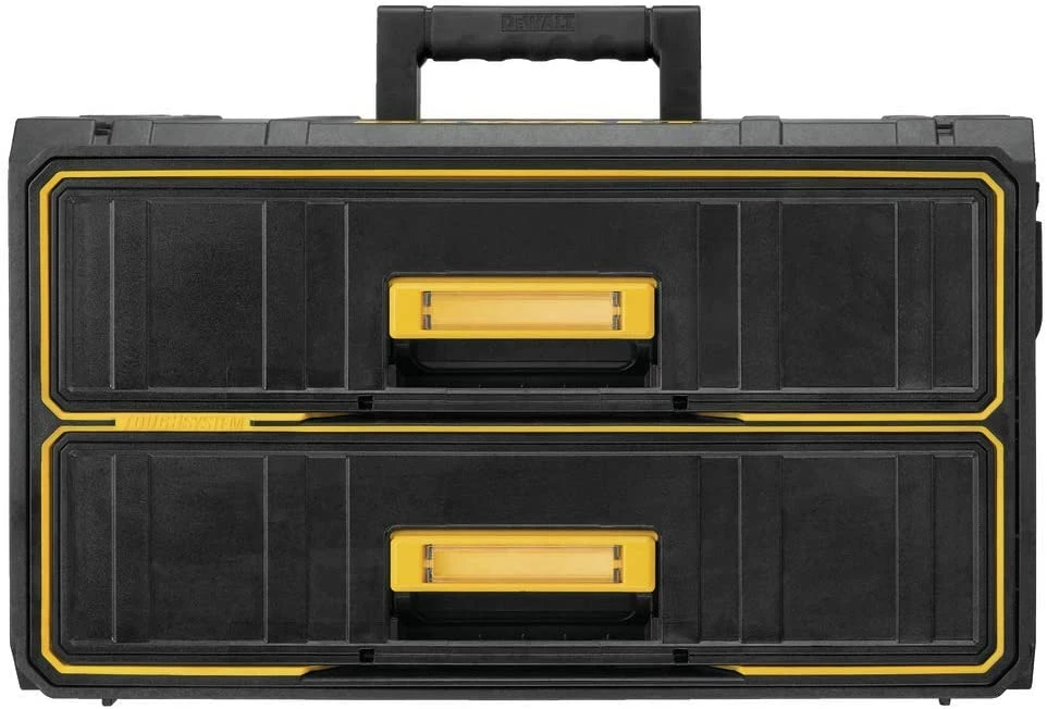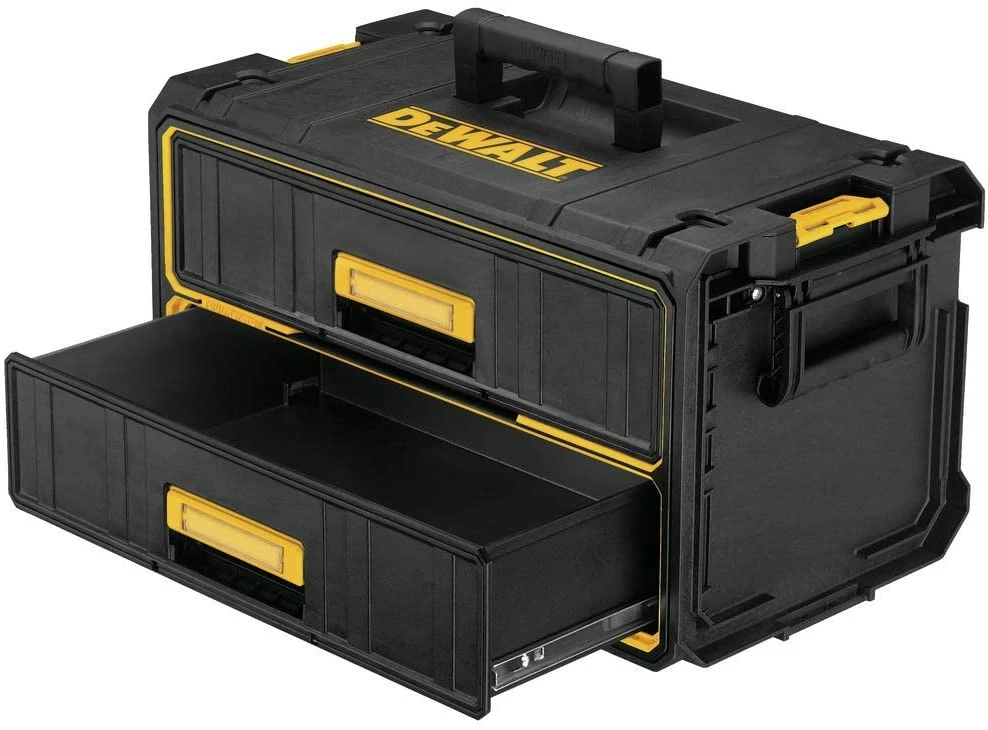 This DEWALT® ToughSystem® Drawers unit allows you to safely store your hand tools in any of the two deep drawers available. Ball-bearing slides allow for convenient opening and side latches enable connecting to other ToughSystem® tool boxes. This 2-drawer unit gives you quick and easy access to your tools, whether they’re attached to other units, on a ToughSystem® Trolley, mounted on our Van Racking, or in your workshop.